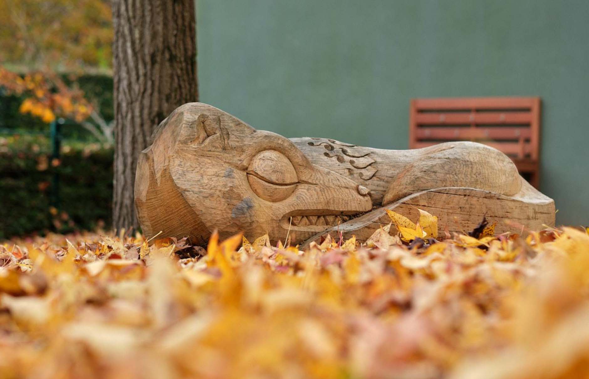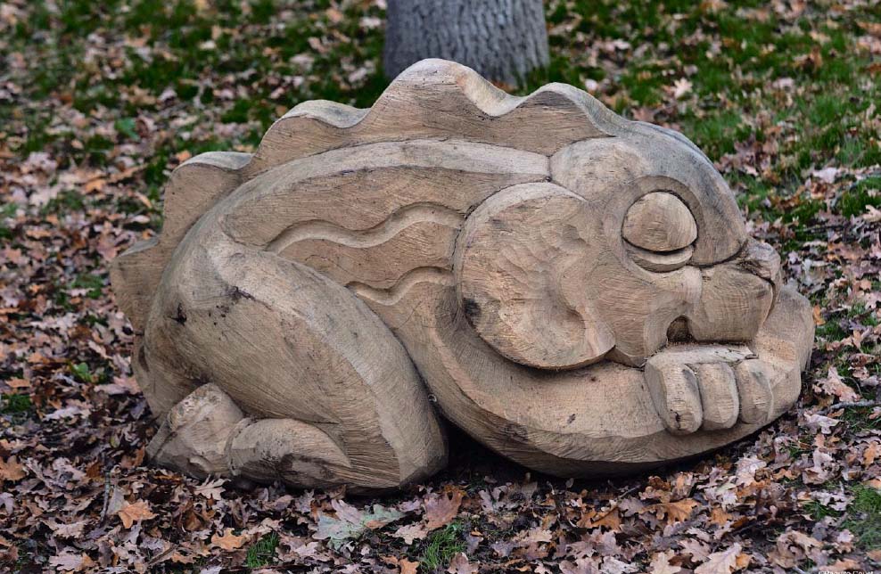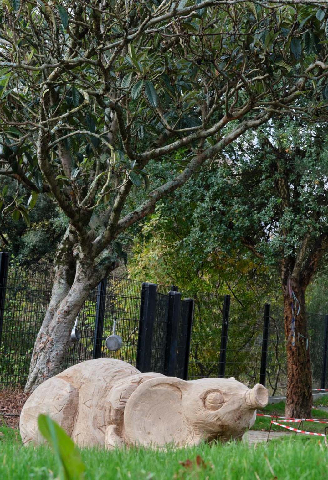 Ces sculptures en bois, qui représentent des animaux imaginaires endormis sont fabriquées à partir de bois nantais, et visent à développer la motricité, l’éveil sensoriel et la créativité des enfants. Elles ont été sculptées par le collectif MONsTR.