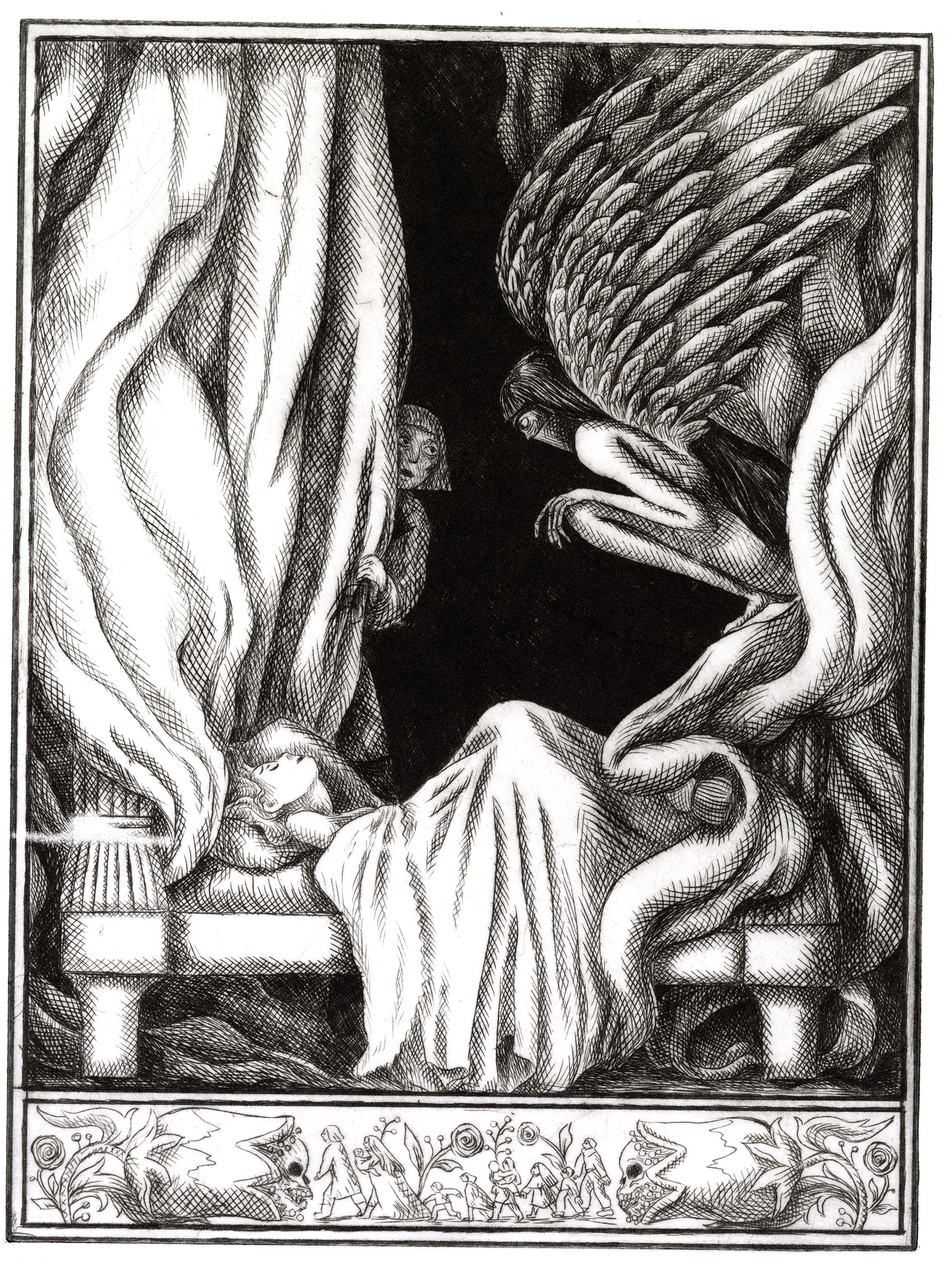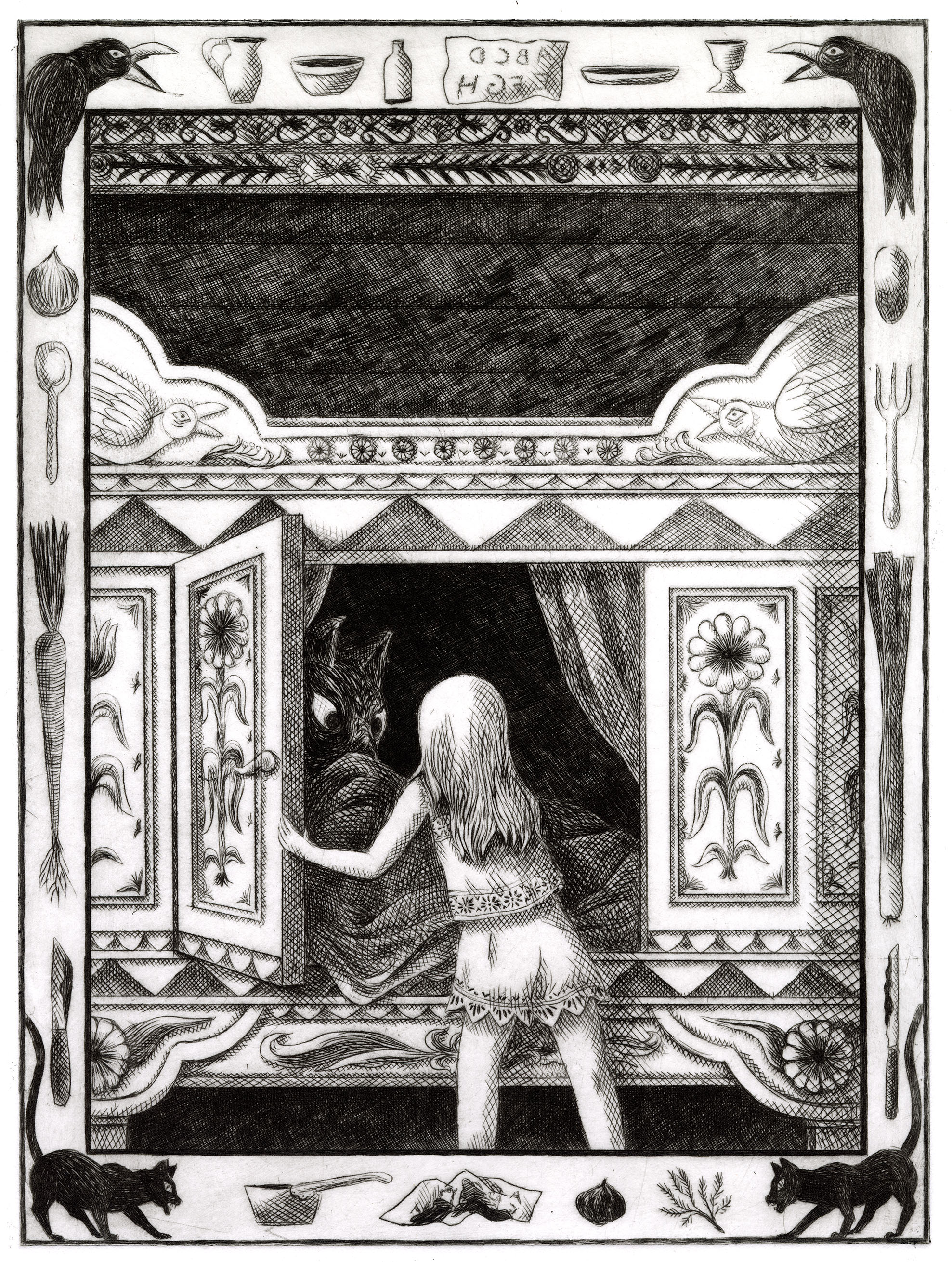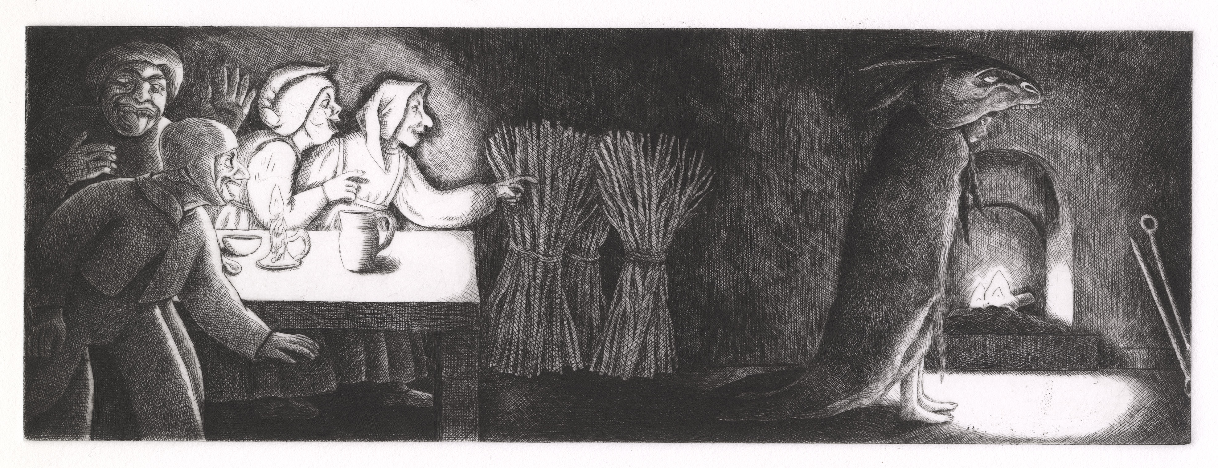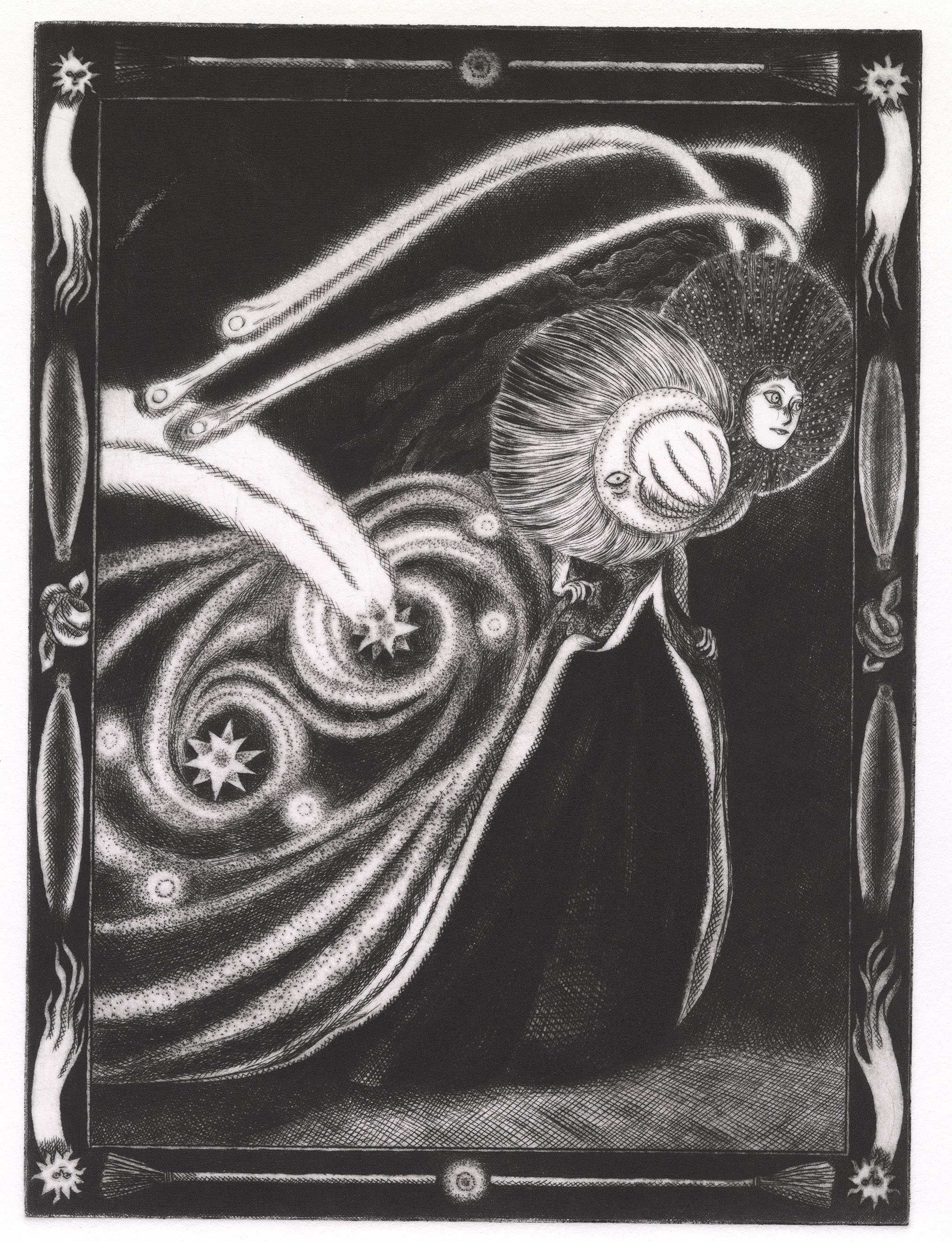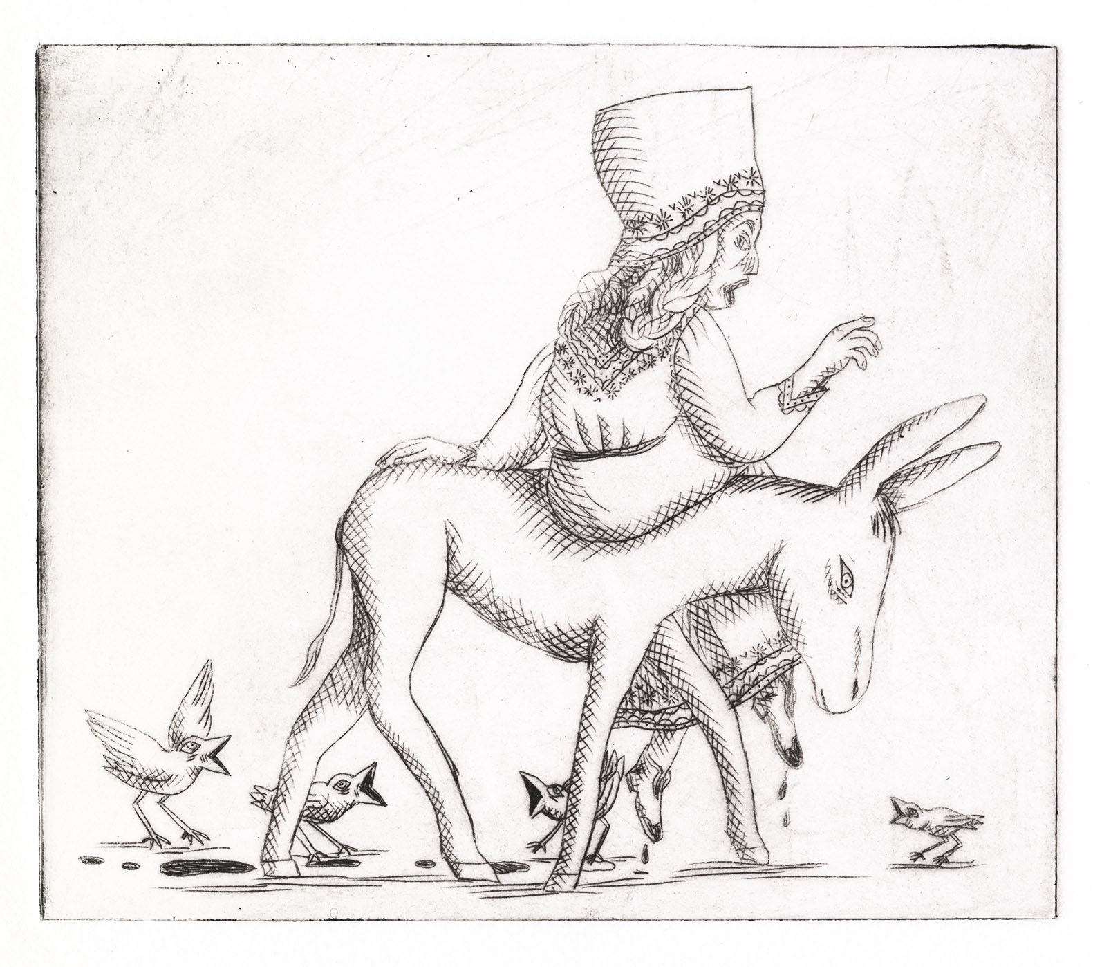 Gravures à la pointe sèche, réhaussées à l’aquarelle pour l’ouvrage imprimé.
